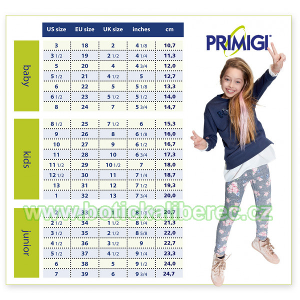 Celoroční obuv zn. Primigi je velmi lehká, maximálně ohybná podešev, pevný opatek, kožená vyjímatelná stélka.